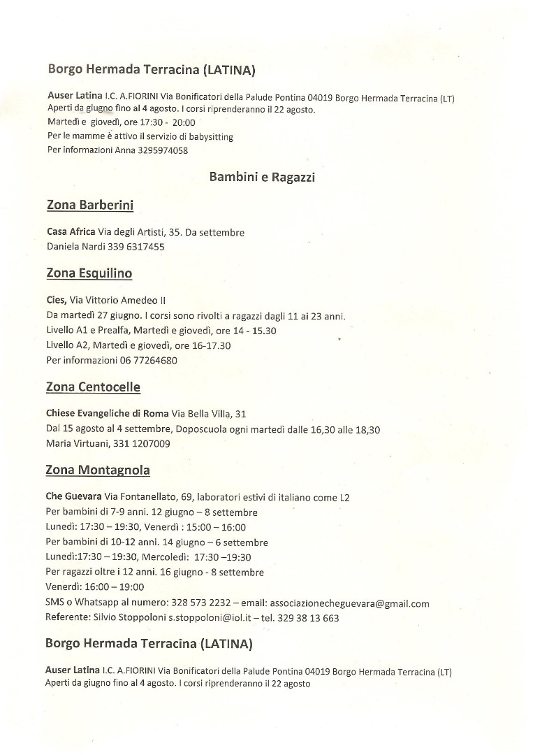 Corso Estivi gratuiti della Rete Scuolemigranti